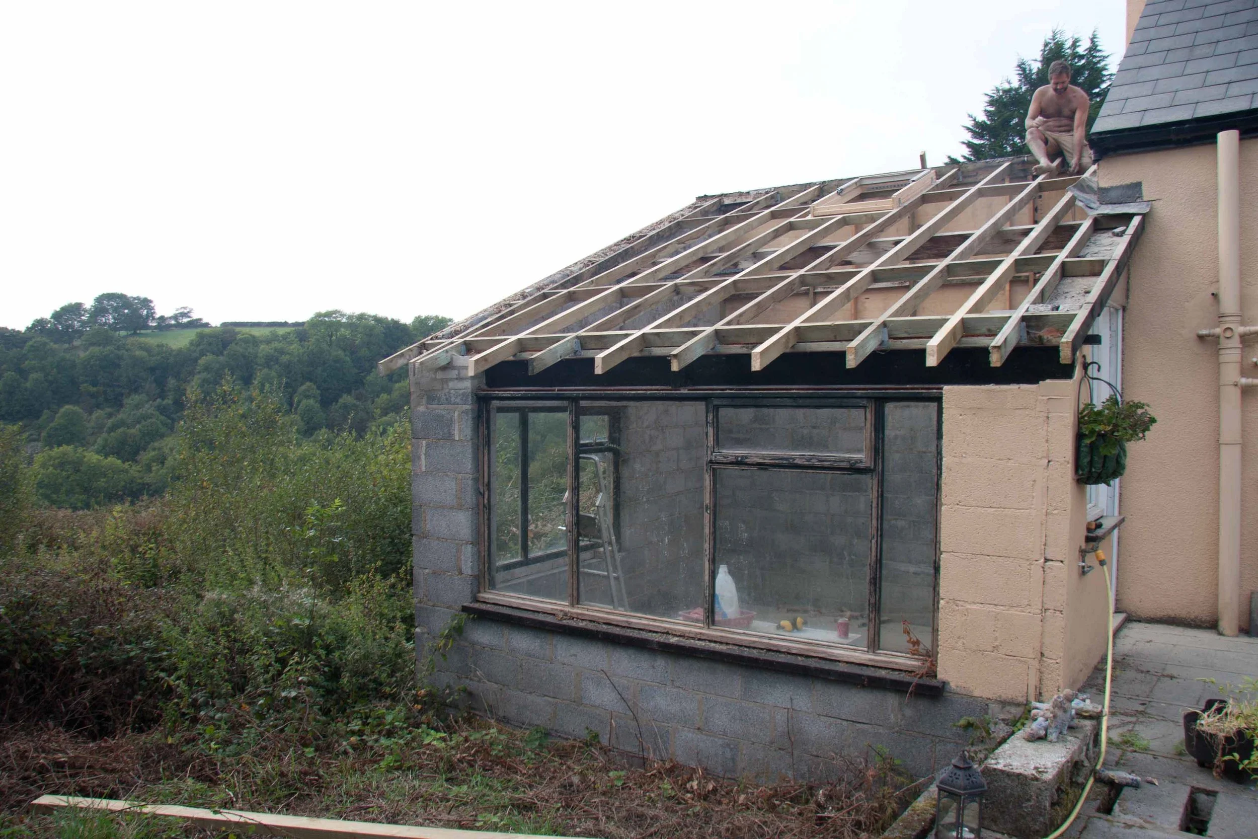 Utility room roof and car port roof removed. New girders put up in preparation for a slate roof and a sky light installed by James and Stuart. A friendly pigeon adopted us with a damaged wing so hopefully the cats won't find him! We are all celebrating the birth of Heather & Matt's baby daughter, Sowelu in Costa Rica on 19th September.