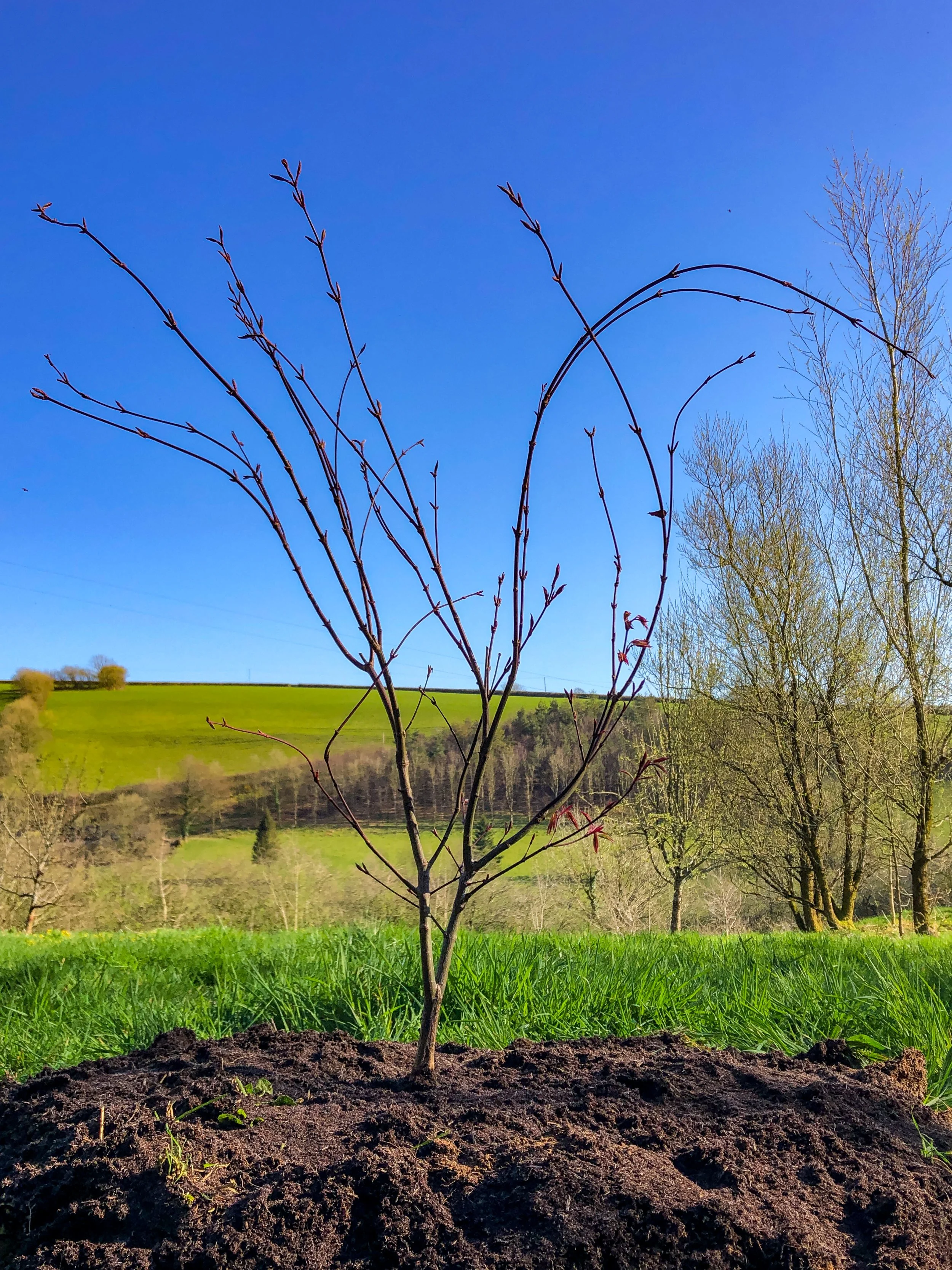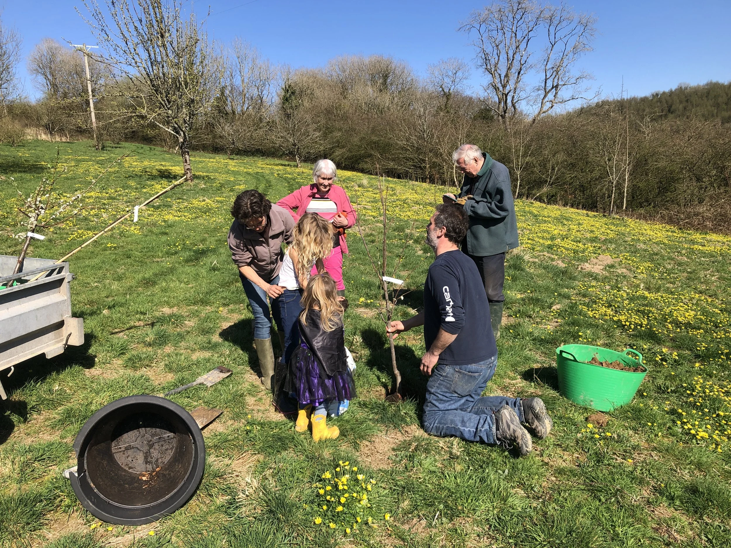 Mixed weather at Easter with warm sunshine one day and snow the next for our Family get together. Two plum trees, a quince and a mirabelle tree planted in the orchard as well as an Acer tree in memory of our friend Terry. New hardstanding in the camping field and area outside the barn extended.
