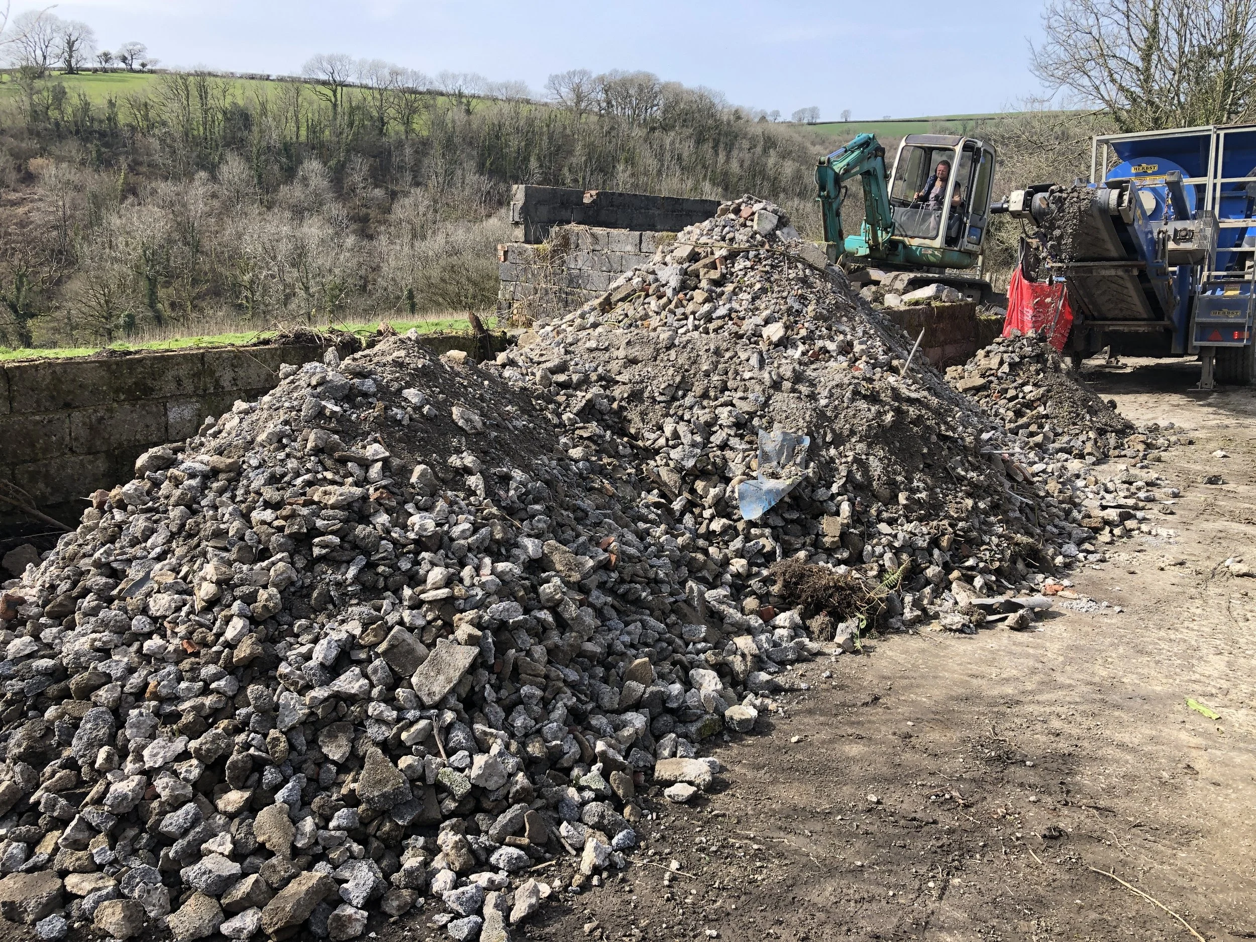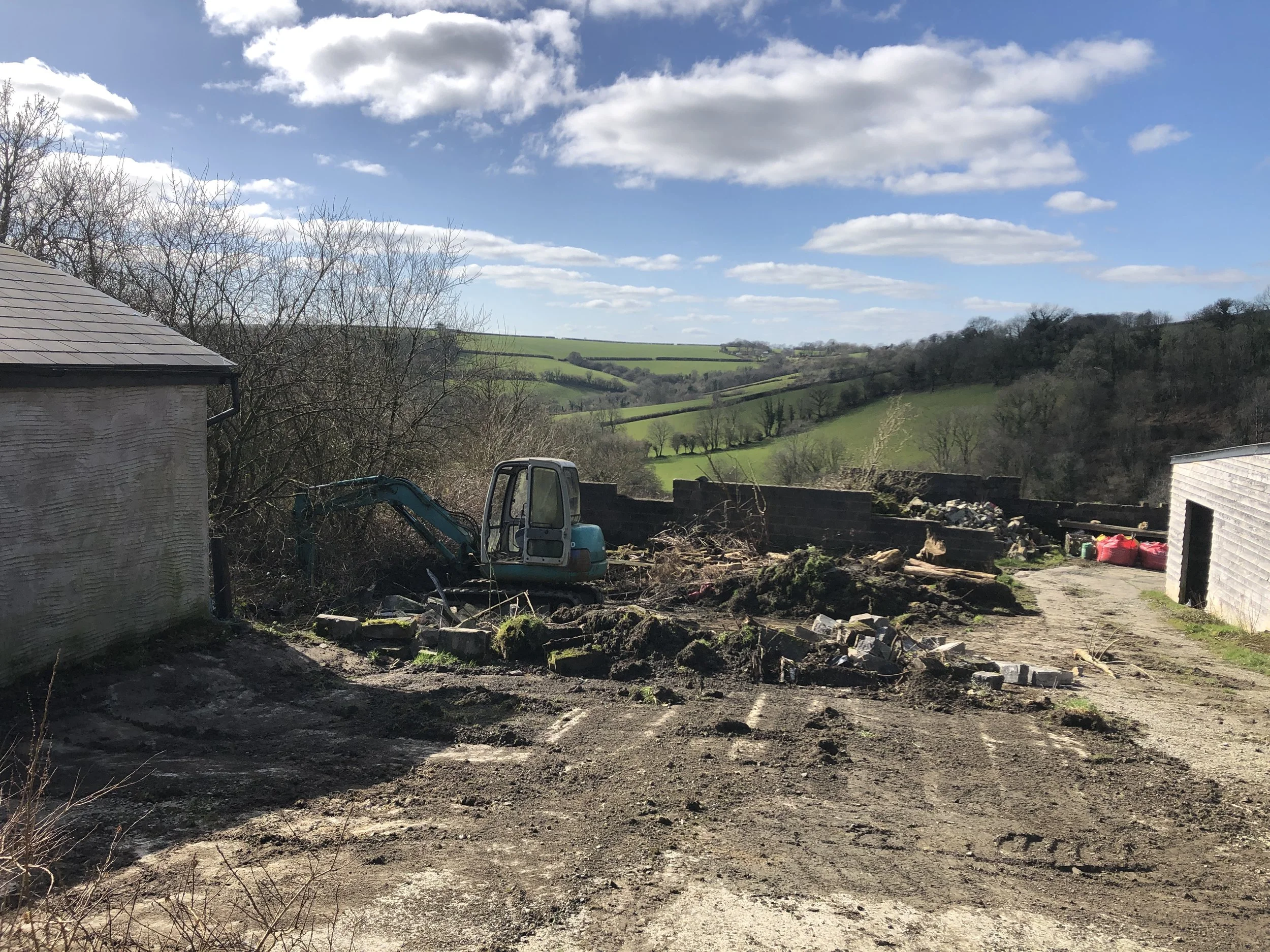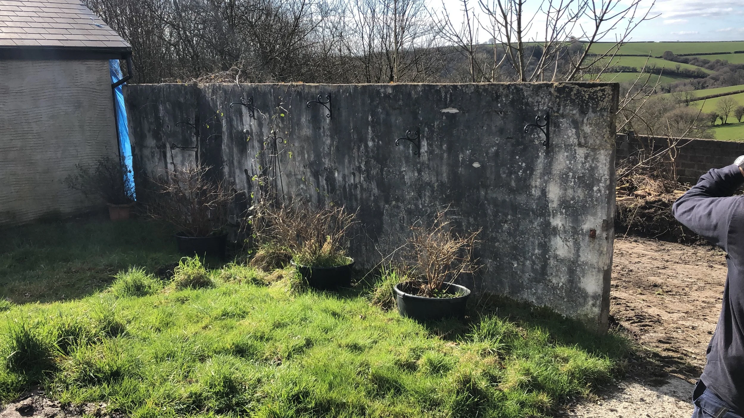 Wall removed in front of the house as it was unstable. Concrete was finally crushed in the yard and cleared. 300 potatoes planted and beds prepared for this year's vegetables.