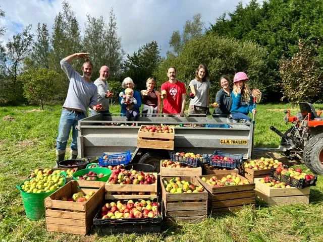 Productive time apple picking with the help of volunteers from Cegin Hedyn community cafe and others. We used the cafe kitchen to produce 12L pasteurized and 15L unpasteurized apple juice which will be made into apple cider vinegar and apple cider. We used Dinefwr Orchardeers to Juice the remaining apples and received 135 bottles all professionally labelled. Julia and James had birthdays this month too.