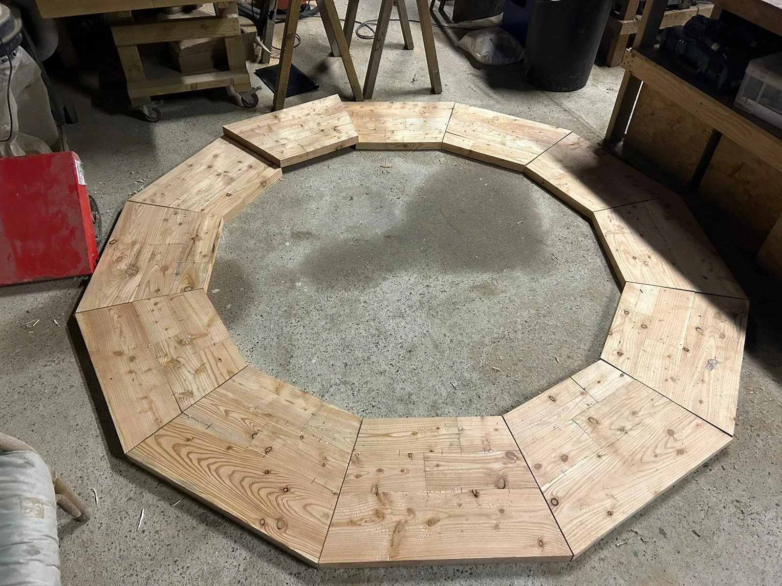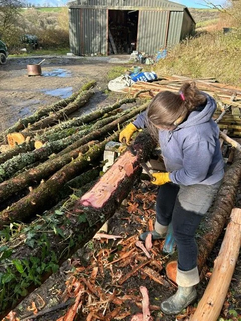 James, Stuart and Heather made a start building using wood from the land and stripped of bark by Heather. Stuart started to work on a table for 12 people. Freezing weather continues with a burst tap outside although fortunately the poly tunnel had been drained so was okay.