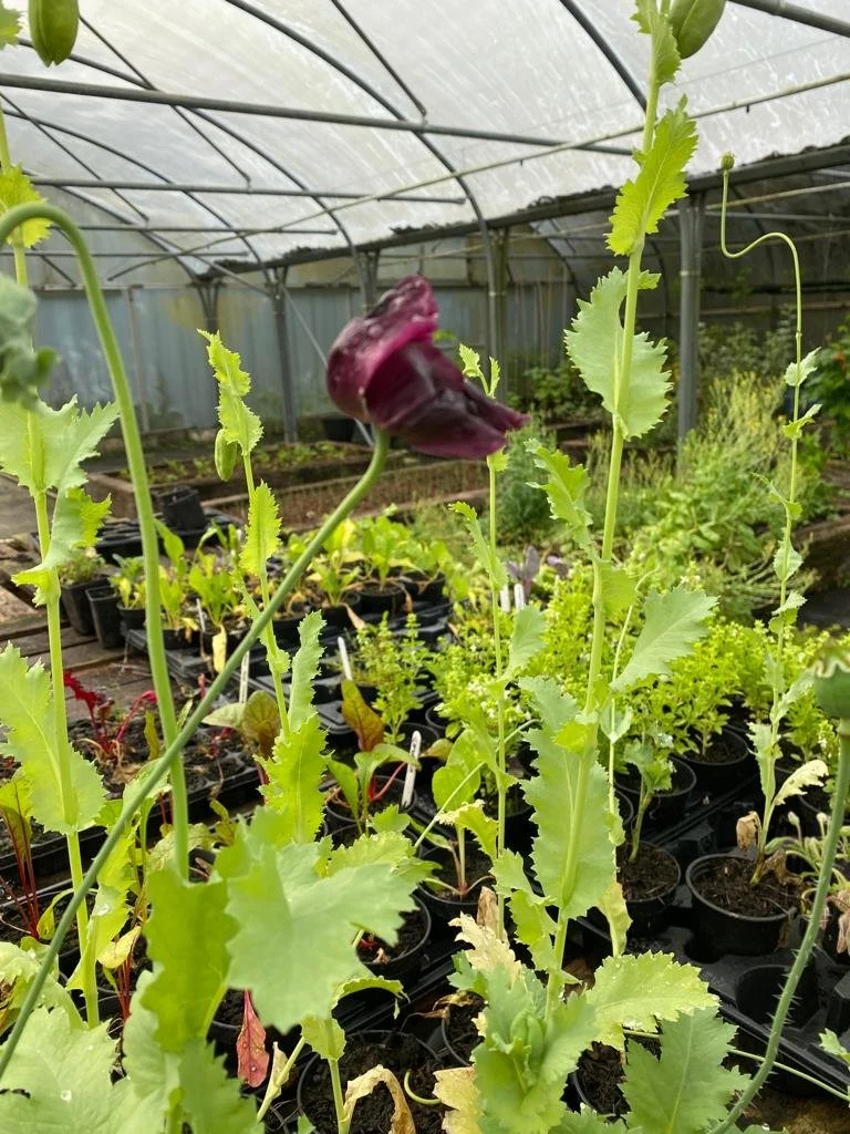 New member of the family arrived called 'Sunei' who is a Malshi (cross between a Maltese and a Shih tzu). He is very tiny and super cute but we have to be careful not to step on him.! Stuart attended a week long course on distilling in Derbyshire ready for our future gin business. Busy month for him with a craft fair at Aberglasney Gardens and a wedding in Cyprus. Meanwhile at home work continues on the vegetable garden and mandala but crops are slow growing this year due to a late start and lack of warm sunshine. Potted up several sedum plants which James had acquired in Bristol ready for use later on for one of the building roofs. Managed to grow a Breadseed Poppy (purple) from seed for our mandala.